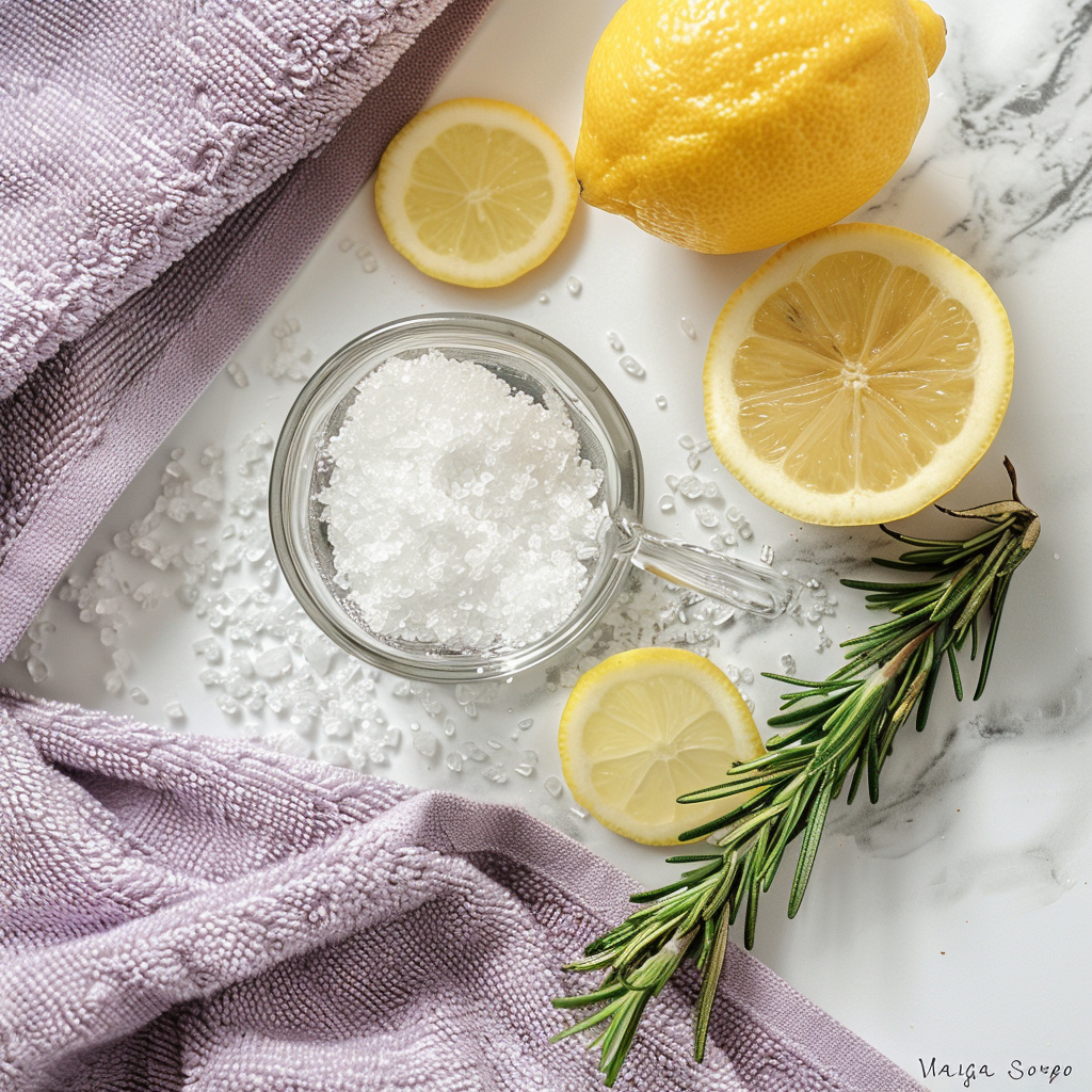 Bath: a handful of salt, a sprig of rosemary, slice of lemon.
